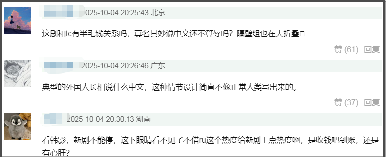 看到如此离谱的剧情,不少网友吐槽韩剧似乎离开辱华就演不下去了,编剧像是接了辱华任务莫名其妙发疯。